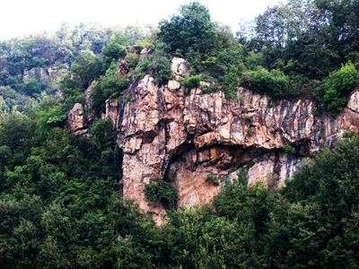 从半山腰处看,正前方的石壁有一个同漓江的著名景点很象相似的景点,-----------象鼻山,(不同的就是我们的大象位于半成山丛中,象鼻山位于水中)我们看到的这头大象非常调皮,看到大家的到来,就远远的同我们捉起了迷藏,把它整个身子隐藏在万山丛中,只露出了鼻子和一只耳朵,您看,大象的鼻子还弯曲着呢,这是一头多么调皮可爱的大象啊!