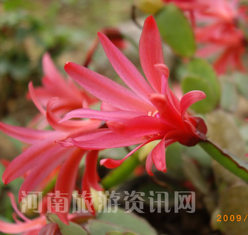 假昙花花着生在顶端,花大,直径6厘米~8厘米,花檐整齐,红色,花筒较短。外形与蟹爪相似,但花形不同而且花期在4月。