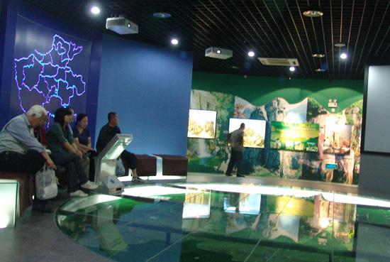 地质环境厅展出面积虽然仅有350m2,但游客仍能从这里领略到中原大地16.7万km2 内丰富的地质遗迹资源,了解地质环境对人类生存与健康、社会发展、文明进步的影响,认识进步的影响,认识地质灾害与群防群治,从而学会与大自然、地质环境的和谐共处