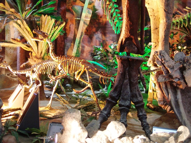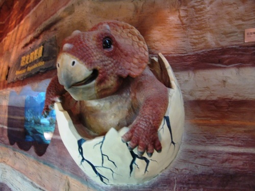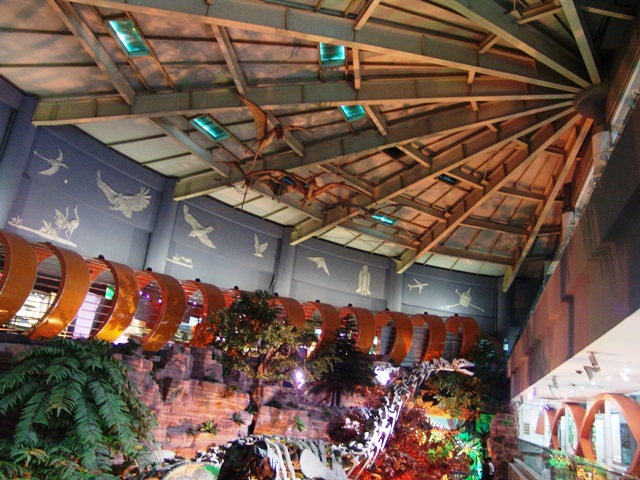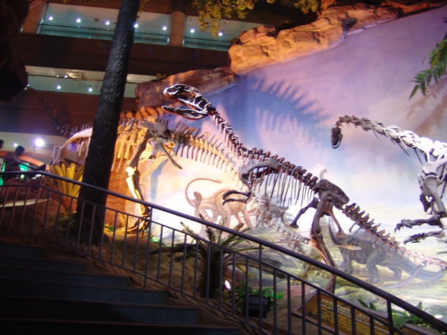 恐龙厅:恐龙厅又称中生代展厅。在此展厅大家可一睹中生代陆地霸主恐龙、海洋霸主鱼龙、空中霸主翼龙的风采。这里展示了出自河南的世界最大的一窝恐龙蛋化石,亚洲体腔最大、最重的恐龙,世界上最小的窃蛋龙,中国唯一的结节龙,十余件珍贵的长羽毛恐龙,恐龙足迹等珍贵标本。还设有《与恐龙赛跑》、《与恐龙比体重》、《恐龙拼图》、《恐龙下蛋》、《恐龙盖章留念》等寓教于乐、供大家参与的互动项目。