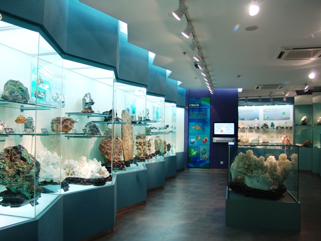 矿物厅:矿物是大自然恩赐给人类的瑰宝,经过亿万年的孕育、演变,形成了千姿百态、五光十色的靓丽群体,对人类的生活有着广泛的影响。人们的生活几乎每天都离不开矿物。该厅展示了数百种精美绝伦的矿物晶体、宝石标本。