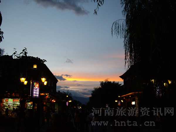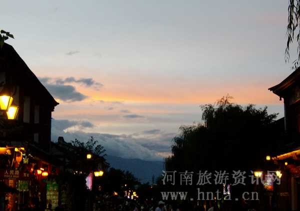 在云南旅游期间,去了大理古城,虽为大理古城的过度商业化而遗憾,但古城夕阳西下,太阳将近隐藏最后一丝光辉前的几分钟,却令人神往。远处青山逐渐变得暗淡,白云笼上了一层粉红色的光辉,街道两旁的古建筑静默在历史里,随风拂动的柳梢更增加了此时此刻的诗意,美哉!