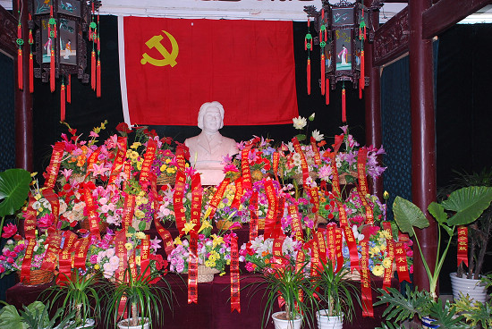 邓颖超瞻仰堂 邓颖超祖居的正门二进正厅为邓颖超瞻仰堂,瞻仰堂正中摆放着一尊雪白大理石的邓颖超大姐半身塑像,是赵炜夫妇及邓大姐的干女儿李媚夫妇出资塑就,于2005年中秋之日赠送祖居,它凝聚着她们对邓大姐的一片爱戴之情。来祖居参观学习的各级领导和游客首先都要到瞻仰堂,向邓大姐敬献花篮和瞻仰邓大姐英容。