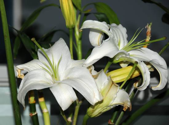 百合花朵试拍。相机:尼康D300,拍摄位置:电棒斜下方。拍摄时间:17:02,ISO300,白平衡自动,未用闪光灯,其余功能未使用。请高手鉴赏并提宝贵意见。