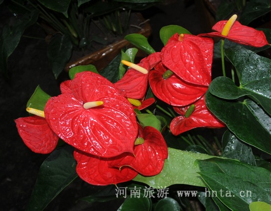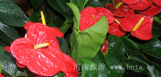 红掌花也叫幸运花,又名安祖花、花烛、蜡烛花,火鹤花、红苞芋、红鹤芋。花 韵:红红火火,好运连锦。繁荣昌盛、兴旺发达、喜迎嘉宾的景意。