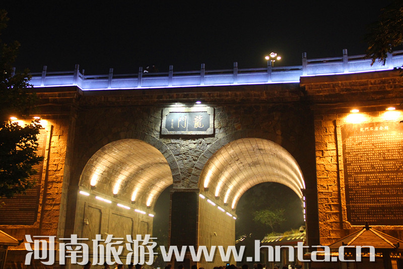 “夜游龙门”从景区停车场开始,各种灯具将景区外的生态停车场、景区商业街和景区绿地照耀得灯火辉煌。进入西山窟区后,宾阳三洞、摩崖三佛、万佛洞、莲花洞等主要洞窟内金碧辉煌。东山礼佛台正前方的水中央,九盏莲花灯玲珑剔透,大者直径达到7米。龙门东山半山腰的香山寺恍如玉宇仙阁。除了灯光艺术外,龙门景区夜游项目还有武皇礼佛、琵琶演奏、古筝表演等活动。图为龙门景区。
