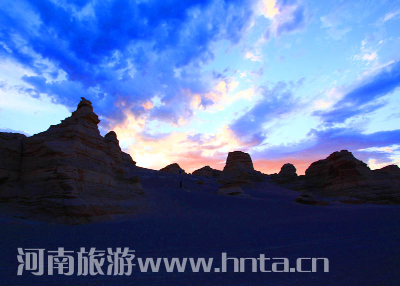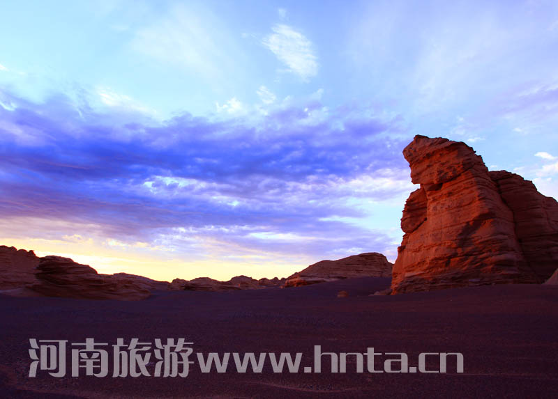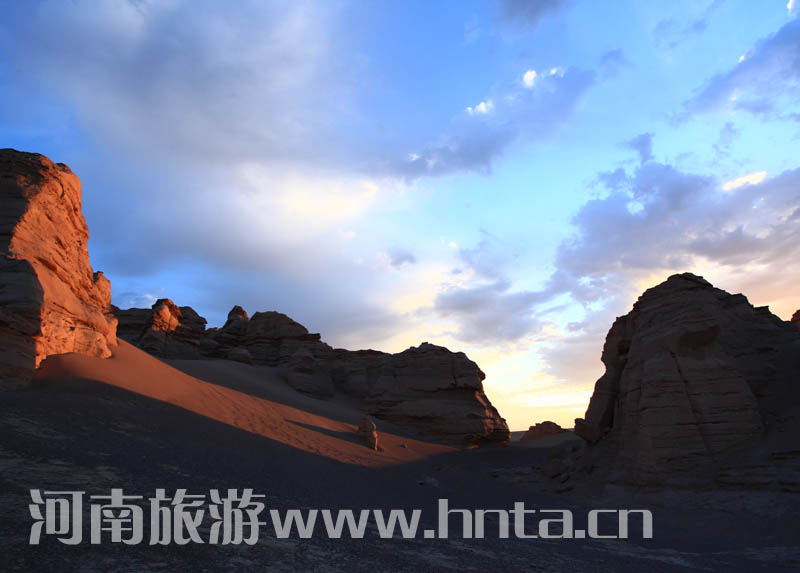 6月15日-25日,2012“河南万人游哈密”暨“援疆号”旅游专列首发活动举行,打通了“豫哈旅游大通道”,掀起了河南旅游援疆的新热潮,是河南省推进产业援疆的创新之举,开创了援疆工作的新模式。图为哈密魔鬼城。