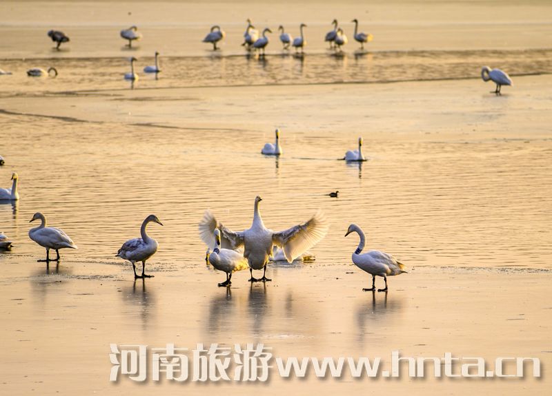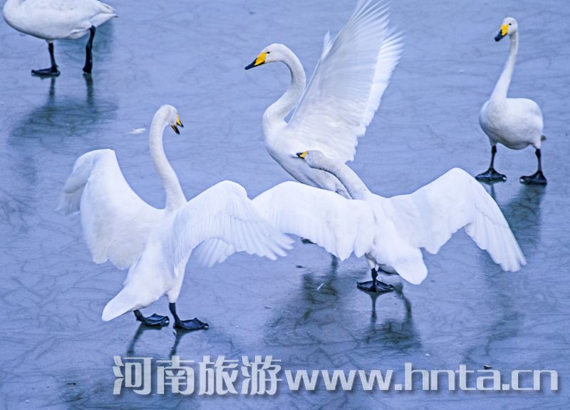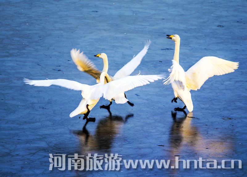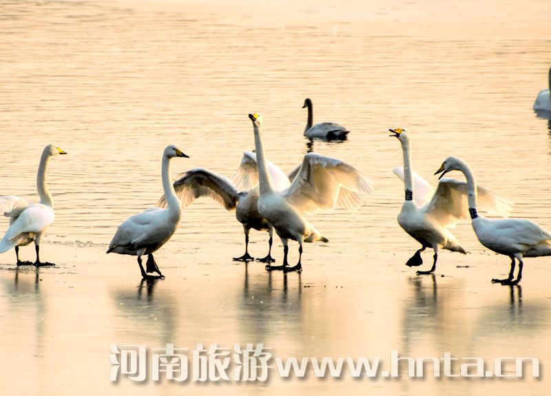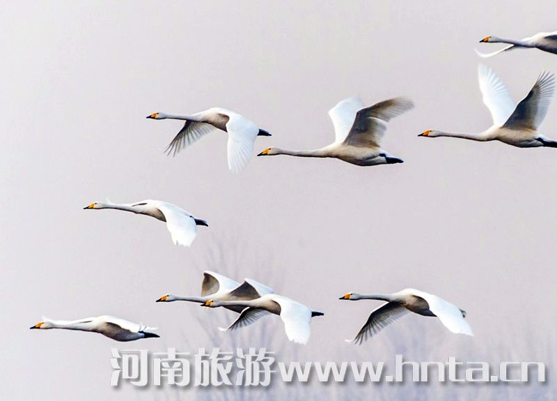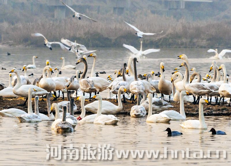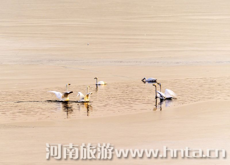 冬天,在宁静的豫西边城三门峡,邂逅天鹅,萧瑟的世界在这里竟然还有如此活力的天地,还有如此高贵的白色精灵。那雪花白玉般的丰羽、冰山漂移般的游弋、鸣号搏水般的冲天、“人”“一”仪仗般的群翔、有序机械般的着陆、相互追啄般的嬉戏。木兰归乡般的梳妆、相濡以沫般的眷恋令我著迷,那高亢嘹亮的鸣唱、一跃冲天的迅捷、超脱尘世的悠闲、长相厮守的身影让严冬焕然升色,令人折服,令人陶醉,使视者洗尽万千尘世的铅华,收获怡心动容的雅趣。三门峡,这片温馨的天鹅度假之幸福家园,拉近了人与自然的距离,也凝固了扑扑的风尘和一瞬的灵感。天鹅啊,你这大自然中高贵的精灵,天堂里神圣的使者,穿越天地之间的英雄,携一路风雪南行,注定要在黄河湿地留下那永远的高雅之姿。绝尘的宁静,旷世的悠远,你用高贵和纯洁,征服了我的一切,占有了我的世界,使我年年都要追随,年年为之感动。