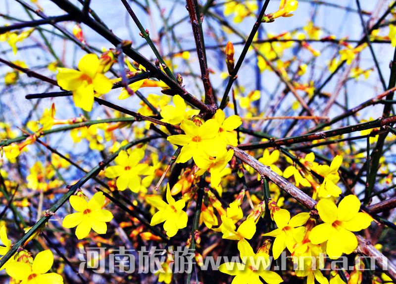 盼望着,盼望着,东风来了,春天的脚步近了。一切都像刚睡醒的样子,欣欣然张开了眼。/迎春花开黄灿灿