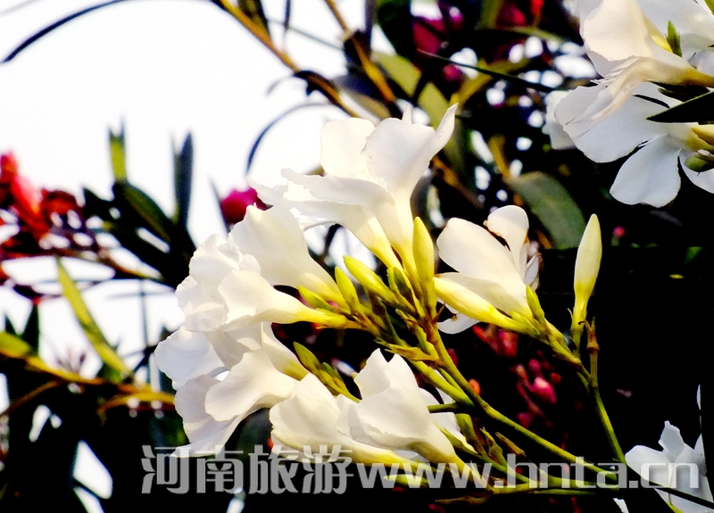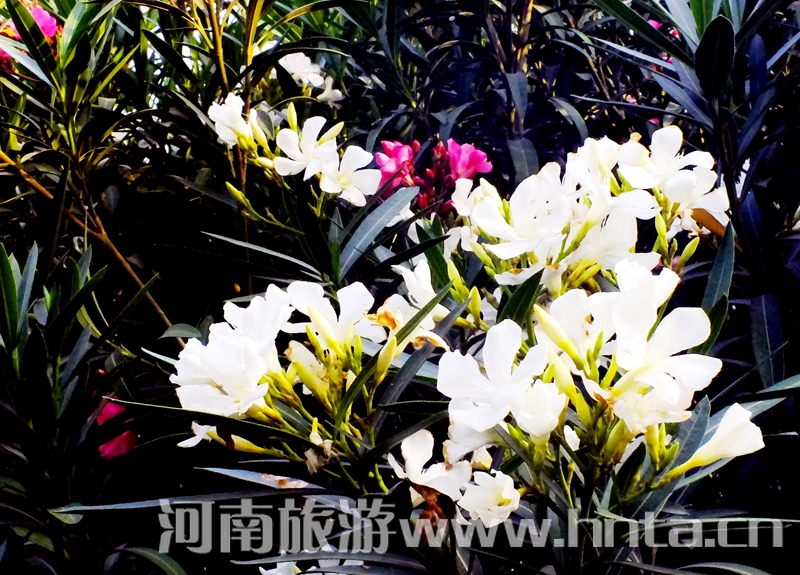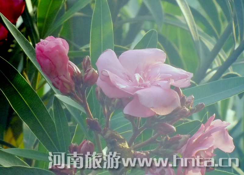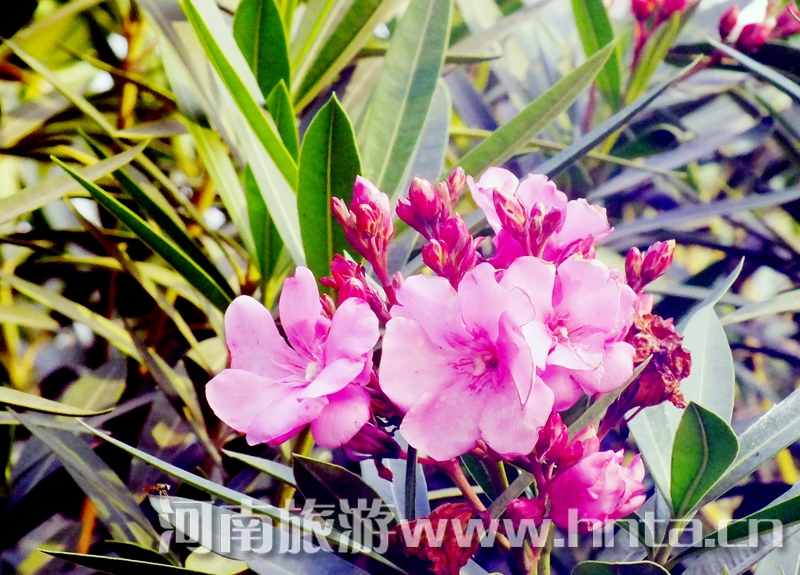 花似桃,叶像竹,一年三季,常青不败。从春到夏到秋,花开花落,此起彼伏。迎着春风、冒着暴雨、顶着烈日,吐艳争芳。