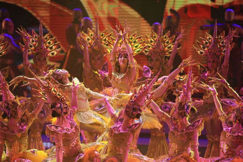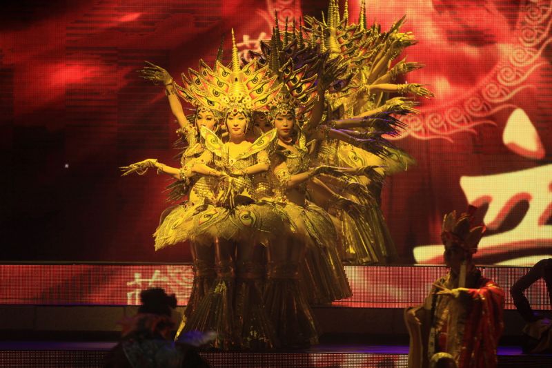 大型多媒体歌舞秀《千回大宋》,是以300年大宋历史文化为背景,以千年开封历史人文为主线,重点体现开封的水、花、人、城、市五大元素,全剧以《千年一叹》为序,让《禅音》、《市井》、《忠烈》、《清风》、《梦回》5篇章呈现宋朝繁华,以《盛世花开》为结尾等7个篇章构成,将舞蹈、武术、音乐、杂技等艺术熔于一炉,刚健与柔婉的风格相得益彰,环环相扣,诉说一幕幕独有的大宋风情。