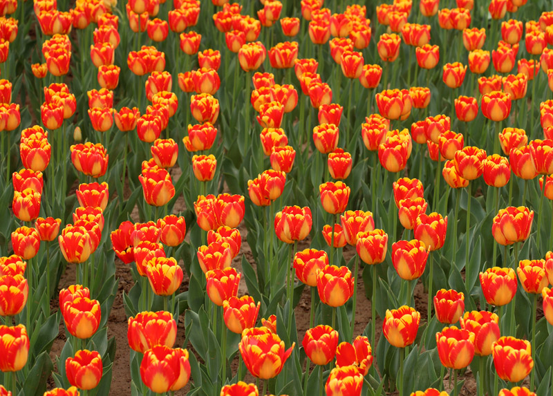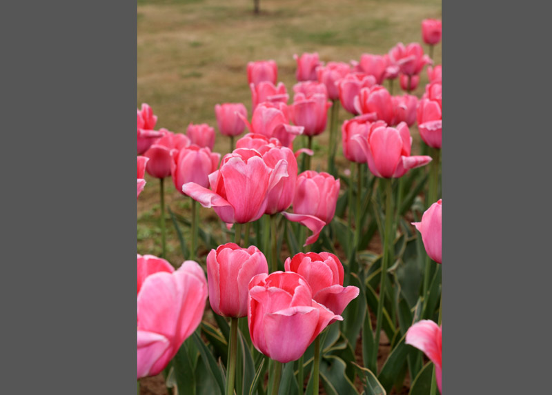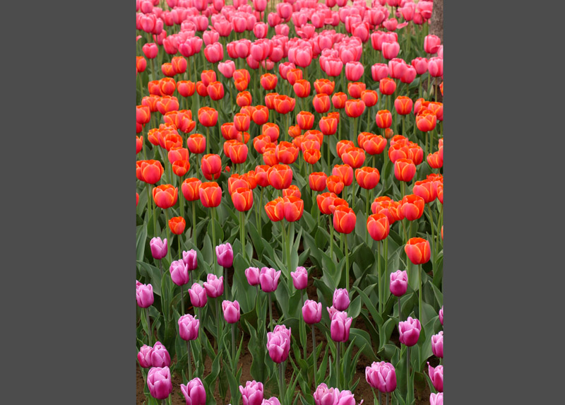 今年的郁金香展引进了60万株郁金香,分红、黄、粉、白、紫、复色等8个色系50余个品种。