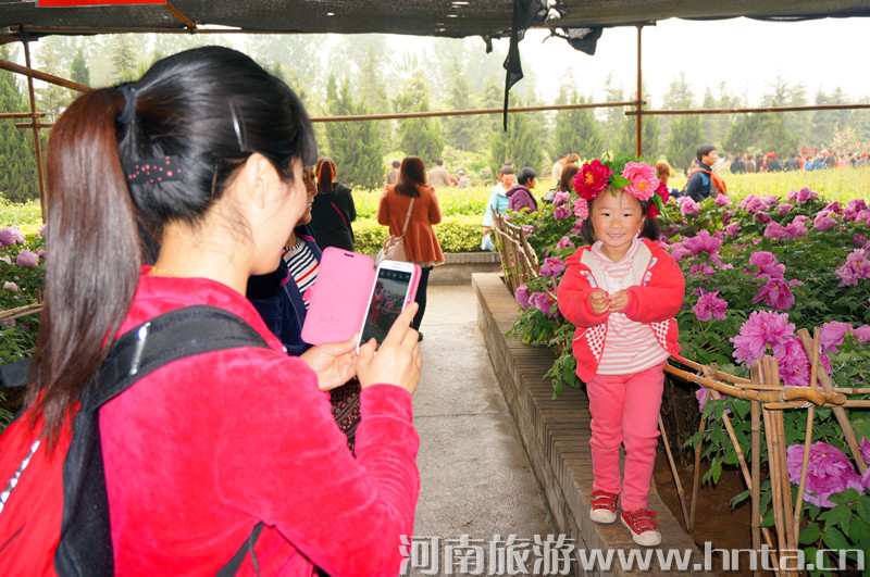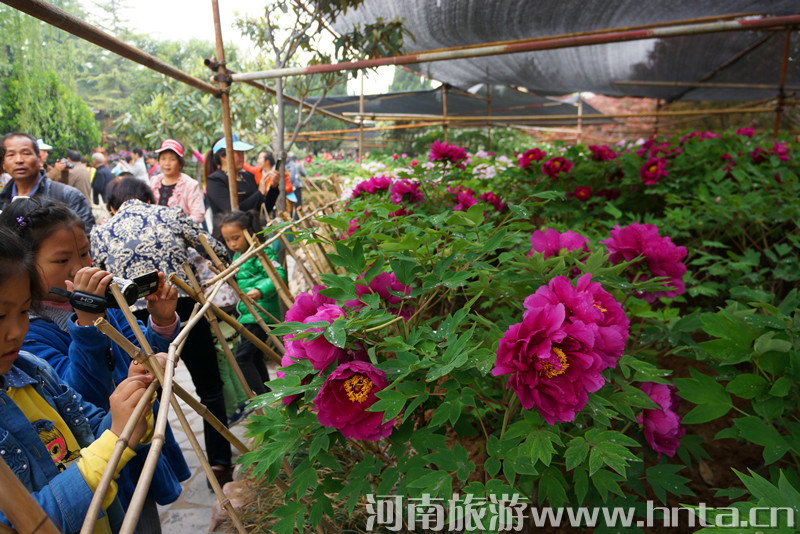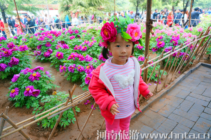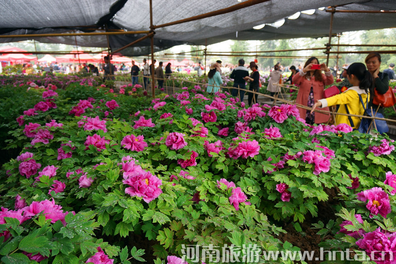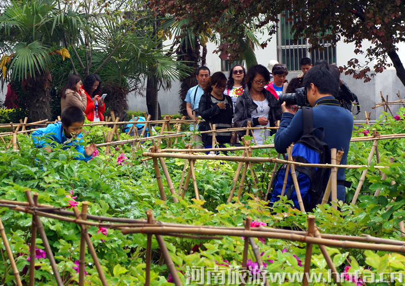 放眼四望,千姿百态的牡丹开遍洛阳古城,千年帝都,美若天庭,疑似琼楼,到处都是牡丹仪态万方的倩影:云雨中,烟村外,大街上,公园里,这里几朵,那里几丛,更有连片成堆的,郁郁葱葱,层层叠叠,柔情姿媚,撒娇吐艳,流香四溢,芳馨袭人!再看人流如潮的赏花人,从天南海北、四面八方,踏着春天的节拍,追寻牡丹的香魂,来到洛阳欣赏它的风华与神采,品味它的高贵与典雅。正如白居易诗“花开花落二十日,一城之人皆若狂”所描写的盛况。