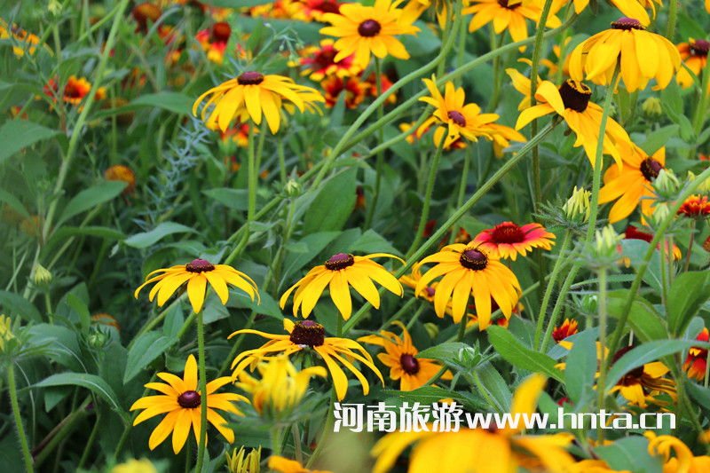 黛眉山高山花园面积有200多亩, 品种达500多种。高山花园精致、奇异、绚丽,花卉品种众多,花园内的鲜花品种和颜色会随着季节的变化而变化,一年四季都有花,季季花色各不同。