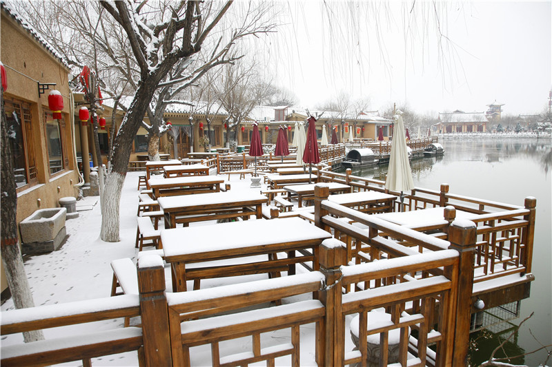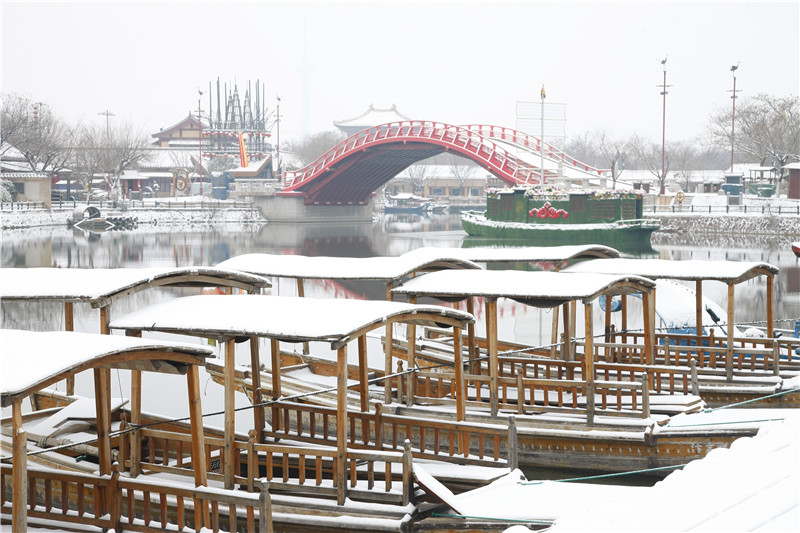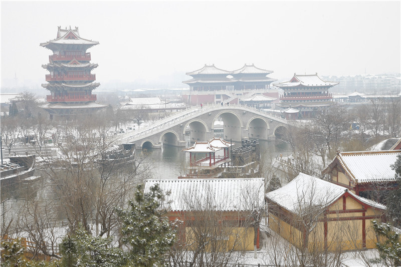 又是一场大雪纷飞,又是一场甘畅淋漓!前几天的初雪怎能过瘾?小伙伴们别再错过了,清园喊您来赏雪啦!窗外白雪皑皑,武大郎、王员外、包大人都出来扫雪啦!打雪仗、堆雪人,欢声笑语。窗外银装素裹,银白色的清明上河园宁静典雅,熠熠生辉。窗外空气清新,行走在汴河边,流连于在虹桥上,登高于上善门,所望之处皆是一片白茫茫,别有韵味。谁说只有南方的艳阳里才有大雪纷飞?来到开封,来到清明上河园,充分享受大雪带来的浪漫吧!