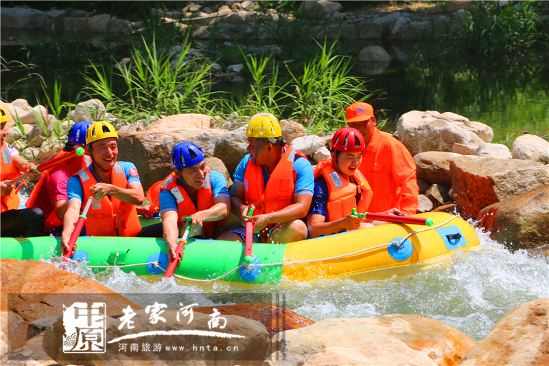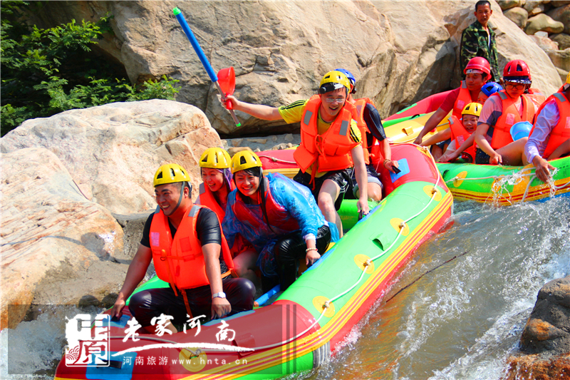 尧山漂流河道精心设计,自然原始,浑然天成。水质清澈,达到国家饮用矿泉水标准。集瀑布、深潭、奇石、暗道、丛林、珍稀植物于一体,自然景色秀美。是中原地区最具特色,配套最完善,交通最便捷,水质最清澈,河道最刺激的漂流,并将以其独特的魅力成为漂流爱好者的新宠。