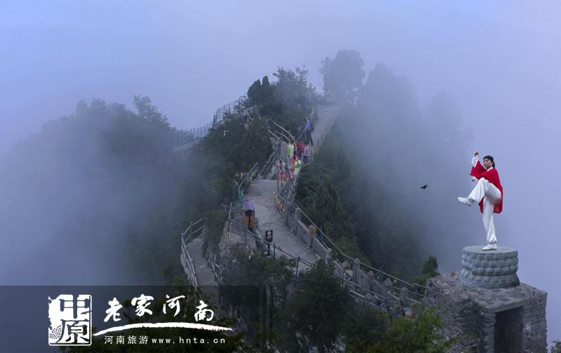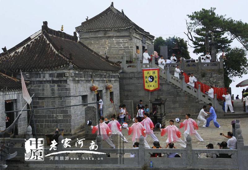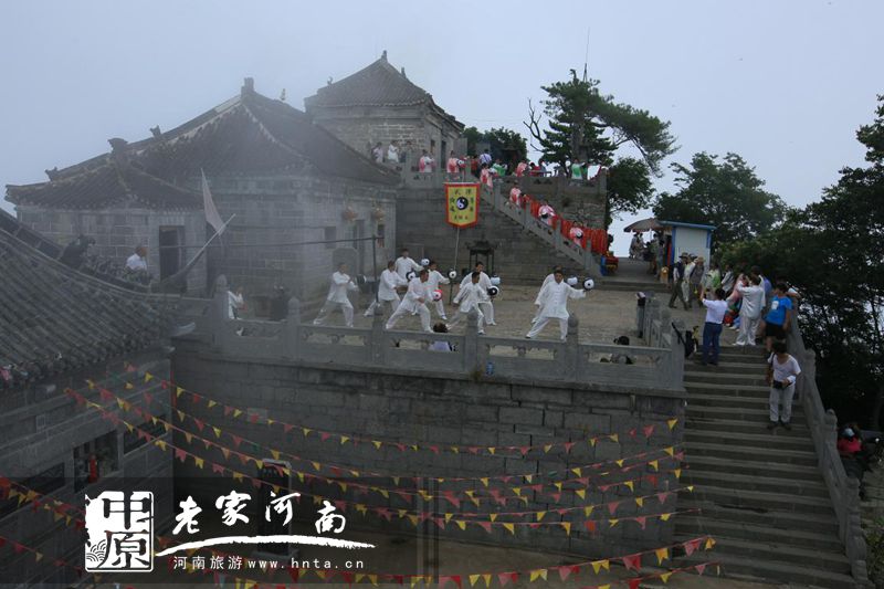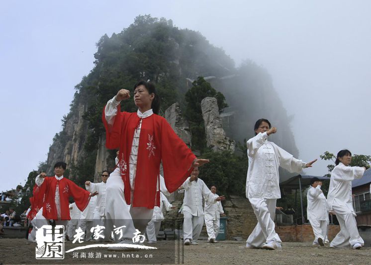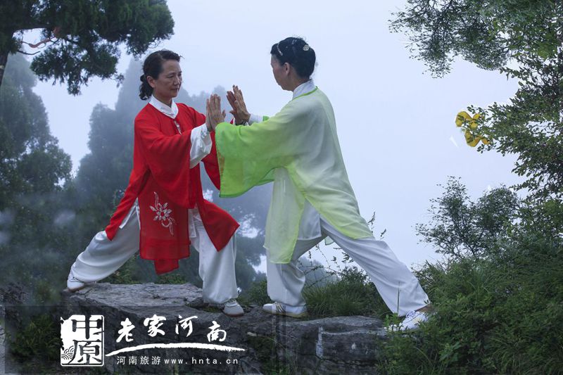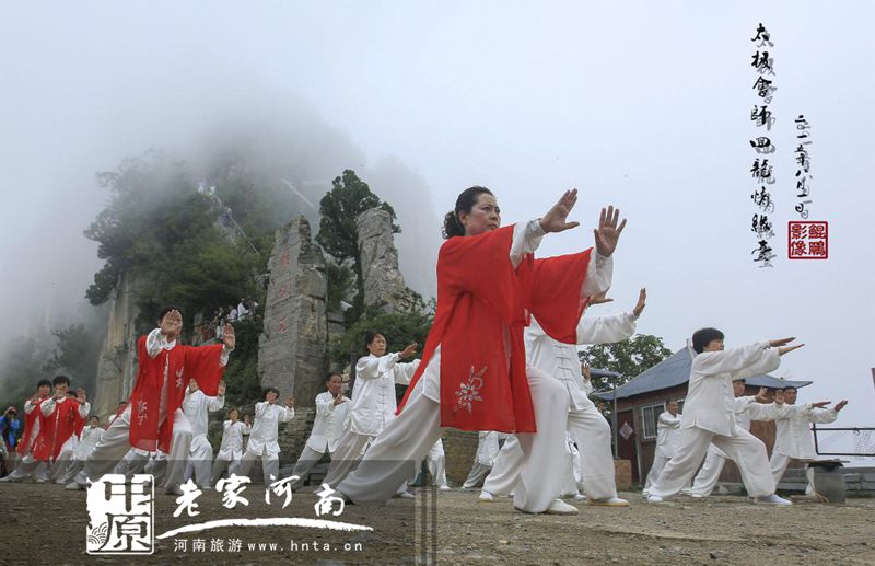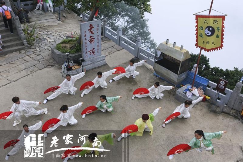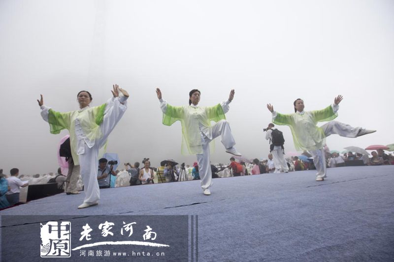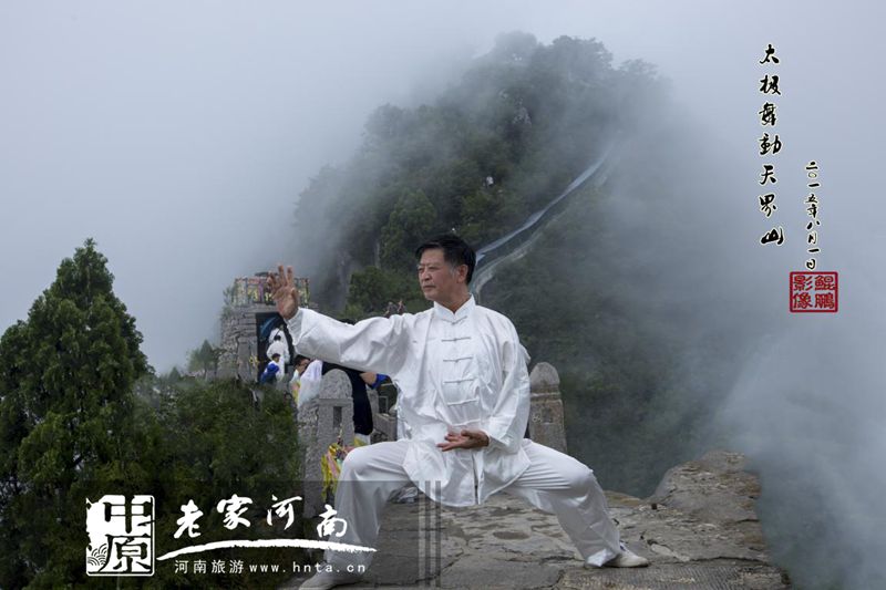 天下第一铁顶,祈福问道圣地,孕育风光无限,探秘太行圣境。日前,太极高手相聚天界山景区,进行了一场前所未有的立体展演。太极拳、太极剑、太极扇、太极球、太极推手、太极拂尘等传统太极项目在太行巅峰圣境回龙▪天界山精彩上演。