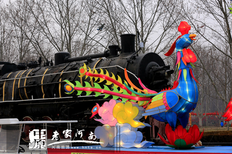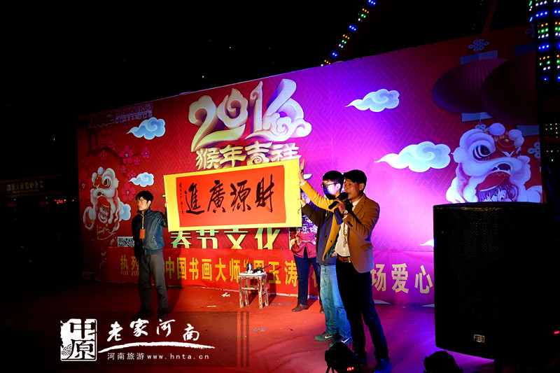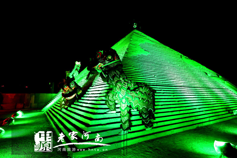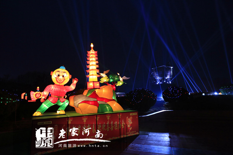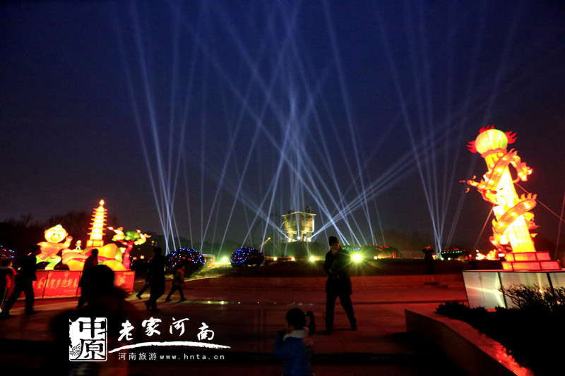 夜晚的庙会不仅有传统的花灯,也少不了富有现代气息的实景音乐灯光秀,在轻快、动感的音乐配合下,一束束彩色灯光变幻出各种造型,如时空隧道般让人倍感神秘。