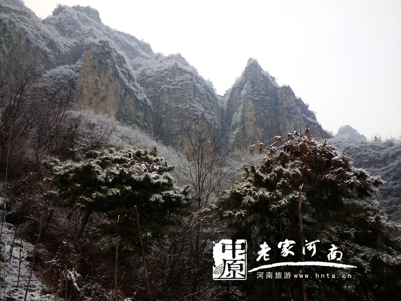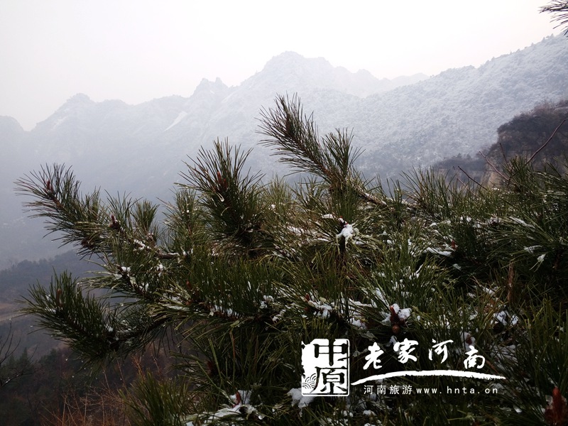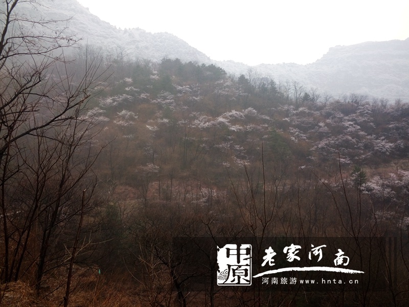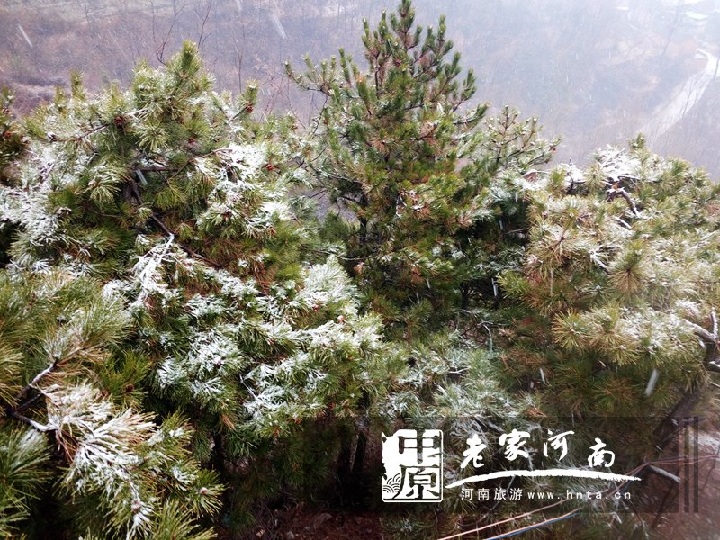 3月25日下午三点,辉县轿顶山景区遭遇“倒春寒”。海拔1686米的轿顶山三月飞起“桃花雪”,玉树琼枝、银装素裹,摩崖石刻和苍松翠柏相衬,犹如一幅精致的水墨画。