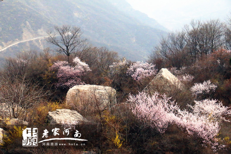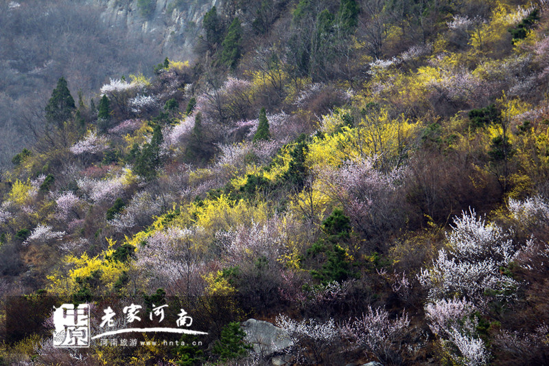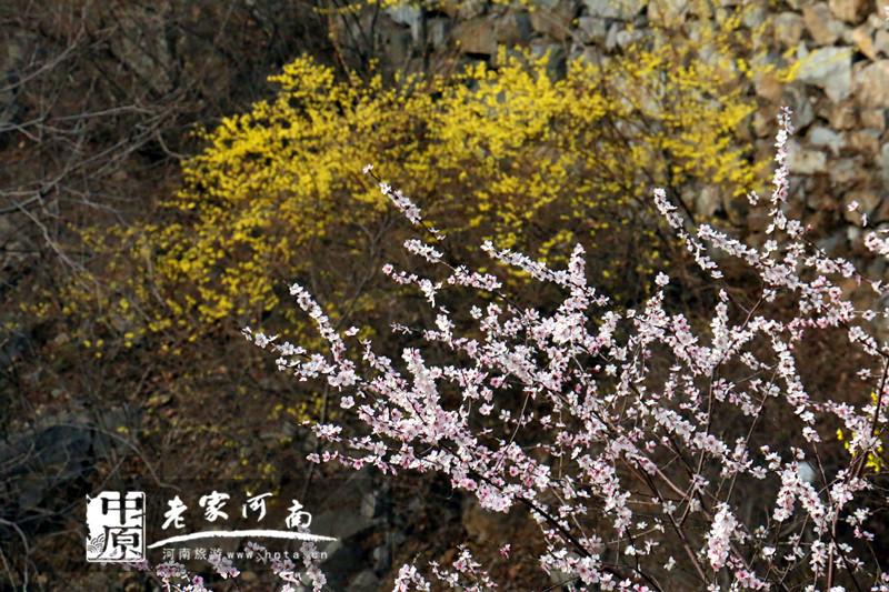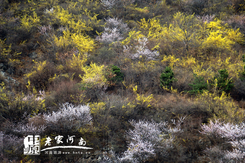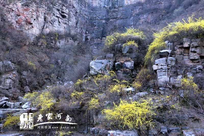 春潮花海醉关山,万亩连翘迎春开。关山地质公园位于太行山南麓,河南省新乡市辉县市上八里境内,面积约34平方公里,是一座25亿年前山崩地裂形成的地质遗迹奇观。独特的自然条件滋养了关山连翘这种独具特色的天然植物。关山连翘不但是一种重要的中药材,具有清热解毒、消肿散结、疏散风热等药用价值,更是早春优良的观花灌木,早春开花,满枝金黄,艳丽可爱。