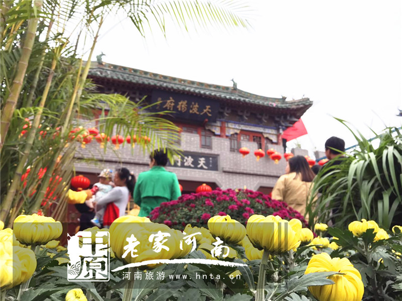 素享“天下第一府”盛誉的天波杨府是为纪念北宋著名爱国将领杨业而兴建的杨家将府邸,是一处集湖光山色、历史文化和宋式建筑群于一体的大型园林。作为中国开封第34届菊花文化节主会场,天波杨府按照开封宋都古城文化产业园区工作部署,景区菊展围绕“秋菊满园”和“杨家将文化”主题,以植物造景为主,突出开封精湛的养菊技艺,结合园内丰富的园林景观以及独特的建筑布局,共设置菊花景点9个,布展菊花10万盆、陪衬花卉5万盆。