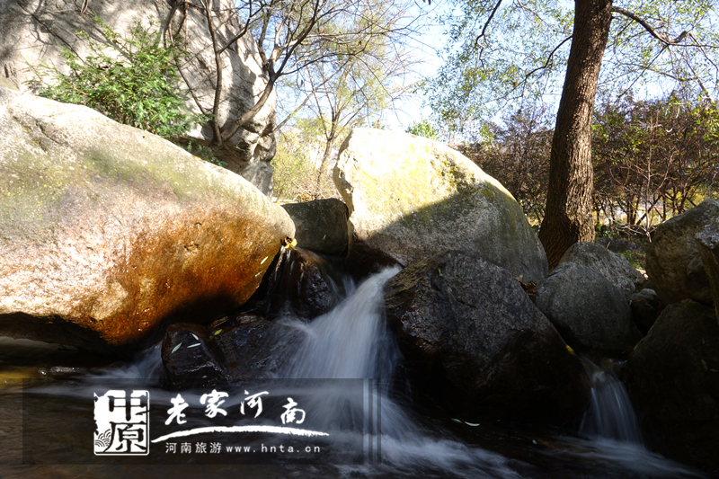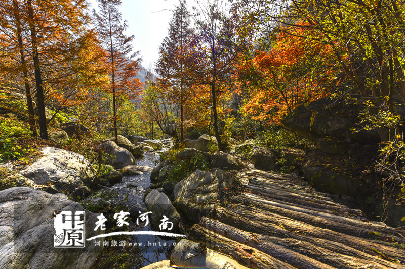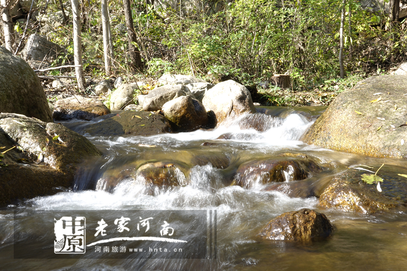 秋天的银杏树林还极具观赏价值,霜降过后,银杏树叶开始变黄,阳光照耀下,抬头金色满目,低头黄叶铺路,挺拔耸立的树干,古老苍劲的树枝,更有群山叠叠呼应,流水潺潺作乐,红叶黄花衬托,怪石嶙峋相映,令人陶醉其中。(摄影 申志)