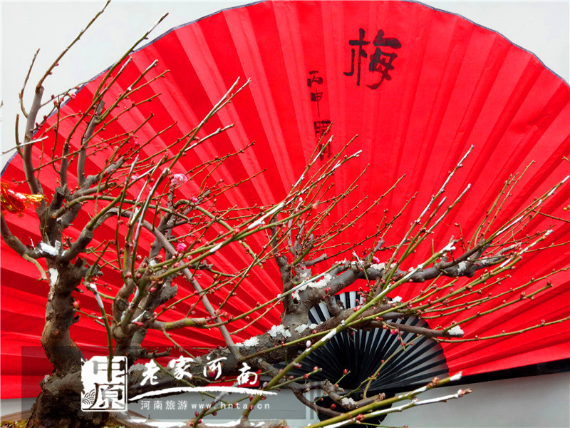 本届文化节举办时间从2017年1月6日至2月16日,以“梅开花都·香飘九州”为主题,会徽是以蜡梅、梅花、飞鸟、山水、旭日为元素的图案,吉祥物为二梅仙子鄢艳、梅美。 (摄影 吴海军)