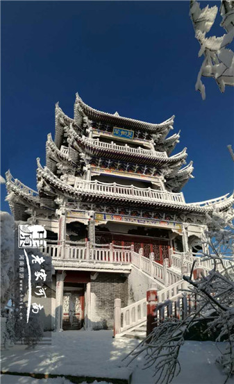 放眼望去,漫山的雪树,色彩斑斓的亭榭楼阁,像极了童话世界,只愿在这“黛眉一梦”中不愿醒来。