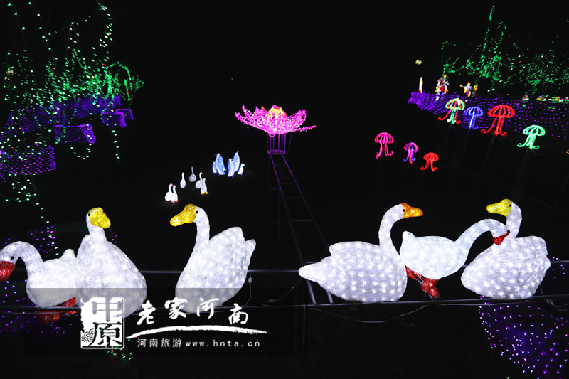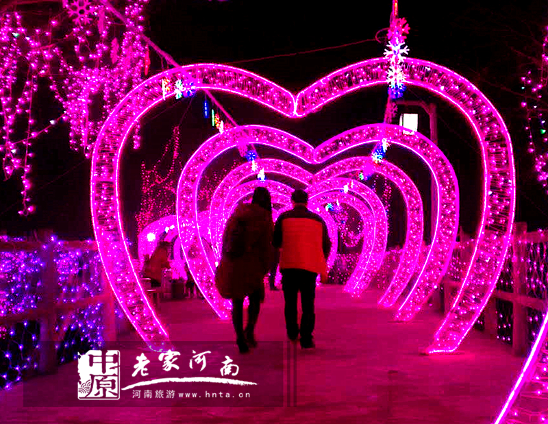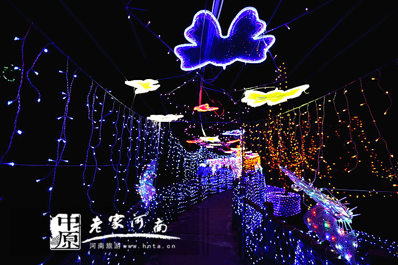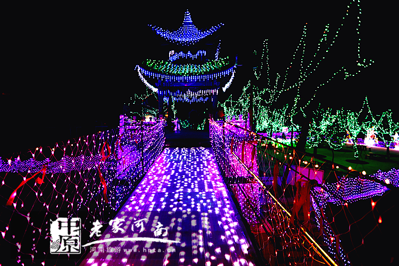以浪漫、梦幻、穿越、爱情、童话等五大主题,利用引进的国际灯光节5000万盏彩灯,打造了水上仙境、时光隧道、爱情长廊、童话世界等15组及数百座造型灯流光溢彩、惊艳夺目的奇幻世界。(摄影 刘巍)