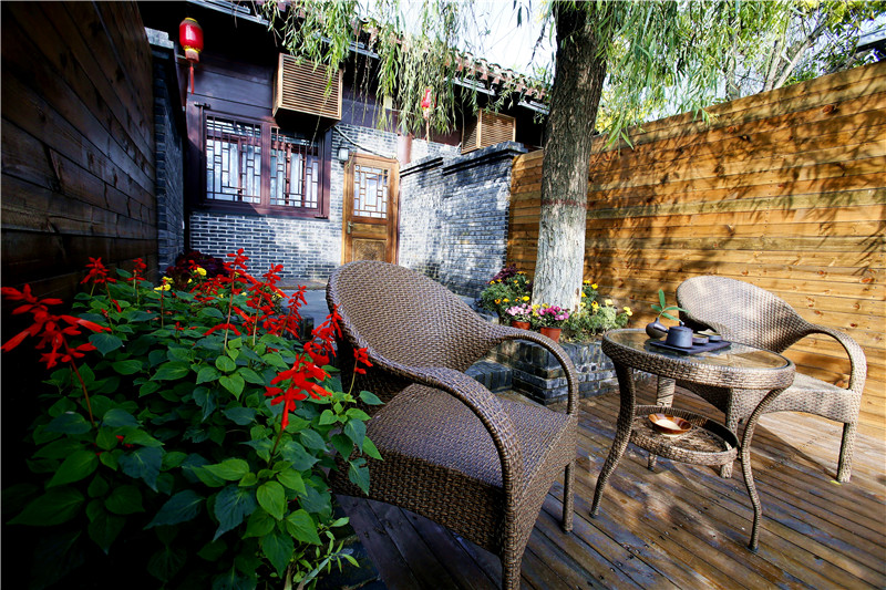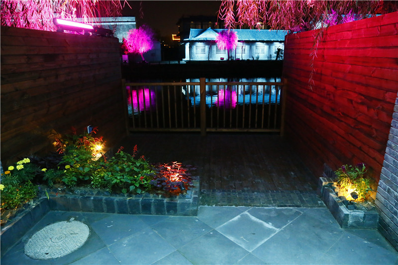 围墙向河岸延伸,提升了房间私密性,庭院外近水处增加的亲水平台、小花廊与古朴典雅的宋代建筑相映成趣。
