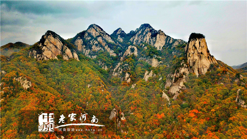 以墨绿色为基调,或红彤彤一簇点缀其间,或金灿灿连片炫丽夺目,一幅多彩秋色争奇斗艳的盛景在栾川的山川河流间恢弘上演。(图:七彩君山)