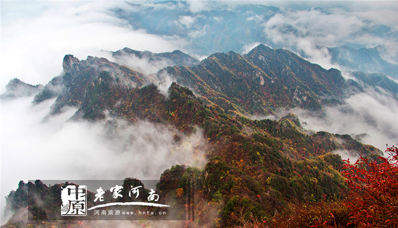 境内老君山、养子沟等景区及乡村旅游点红叶观赏指数已陆续达到Ⅲ级,为红叶最佳观赏时机,预计持续时间为十五天左右。(图:老君山 摄影:王晖)