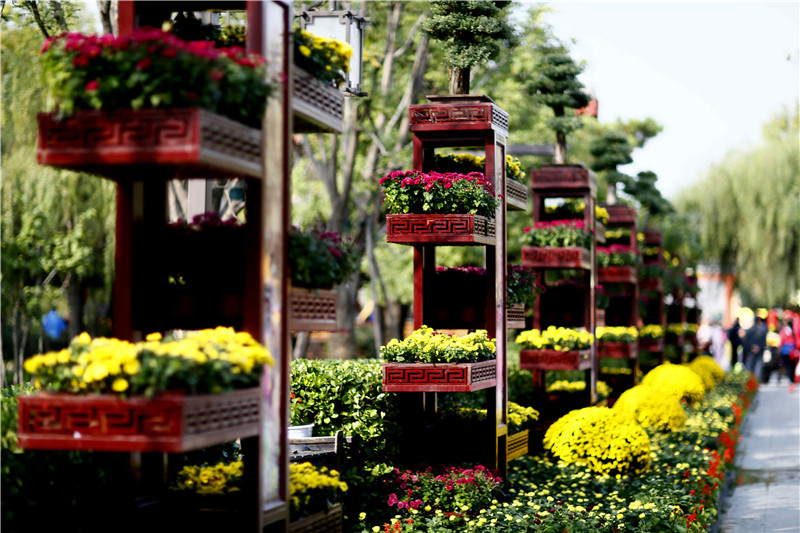 不是花中偏爱菊,此花开尽更无花。抓住这个季节的美好时光,来清明上河园赏菊吧!(摄影 刘永海)