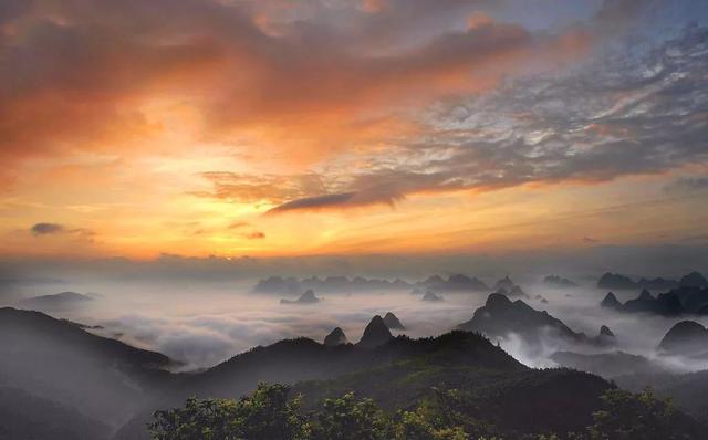 云海是指在一定的天气条件下云顶高度低于山顶高度,从高山之颠俯瞰似波涛翻滚的云层时,好象立于大海之滨的一种气象景观。每逢雨过初霁,风力减小,气温升高,大气层结比较稳定,容易生成云顶高度较低的层状云,云层受气流影响沿山谷阳坡爬升,在内部热力和动力共同作用下不断运动,使云顶高低不平。