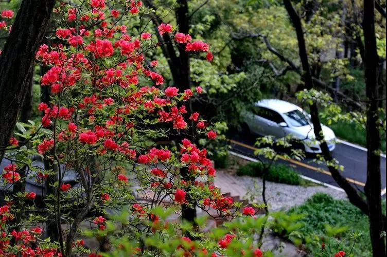 在朝阳的山坡上,一簇簇红杜鹃像一群群跳着舞蹈的青春美少女。