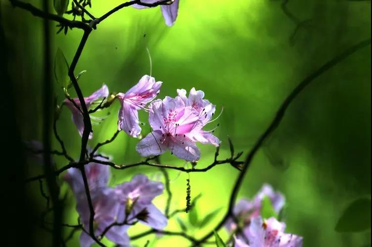 杜鹃花多为簇生荆状,分枝多而纤细。虬曲的身躯生出许多同样虬曲的枝丫,她们只生长于海拔500-1200米的山岭上,远离尘嚣,清贫坚守,可谓清高气傲,超身世外。