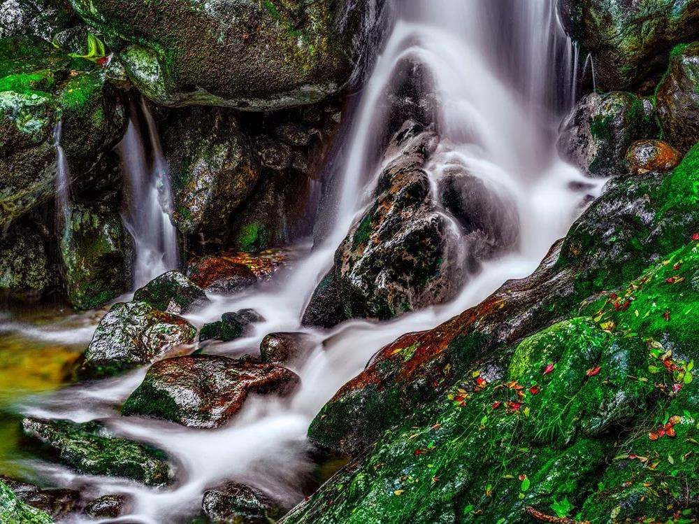 这里的水,似飘逸的秀发,清澈透明,喷涌 四溢,无忌地奔流。让老君山充满活力,赋予君山新的生命含义。