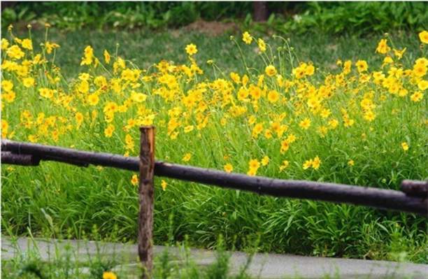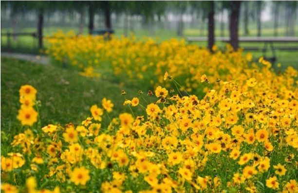 虽说此时正逢初夏,百花齐放,但是剑叶金鸡菊清新自然,毫不媚俗。放眼放去,菊花的黄,和草地的绿,遥相呼应,点缀着湿地公园。(图:泉之海V)