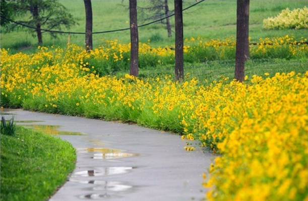 近日,郑州陆陆续续一直大雨不断,趁着雨停,到北湖湿地公园走走,不想,竟偶遇一路的剑叶金鸡菊。(图:泉之海V)